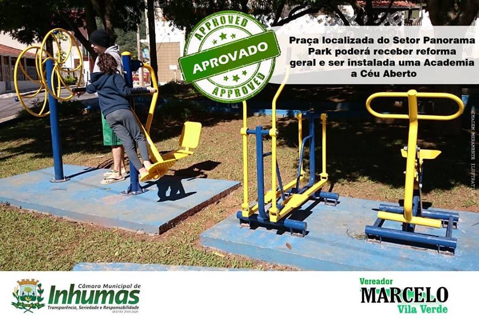 Aprovado por unanimidade o “Requerimento n° 015/19” do vereador Marcelo Vila Verde (PDT), durante “Sessão Ordinária” realizada dia 24 de janeiro, na Câmara Municipal de Inhumas, que solicita do Executivo que através da Secretaria competente os serviços de “reforma geral” da Praça localizada no Setor Panorama Park, bem como a instalação de uma “Academia a Céu Aberto”, com aparelhos para a prática de atividades físicas.