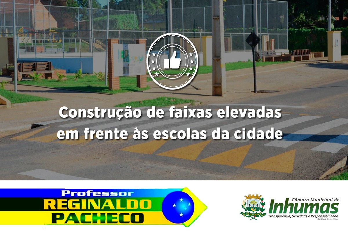 Aprovado por unanimidade durante “Sessão Ordinária”, realizada dia 12 de fevereiro na Câmara Municipal de Inhumas o “Requerimento de n. 046/19 do vereador PROFº. REGINALDO PACHECO que solicita do Executivo que através da Secretaria competente, proceda a construção de “Faixas Elevadas”, no modelo da que foi instalada em frente ao Atacadão da Economia, na “frente de todas as Escolas de Inhumas”, sendo elas municipais, estaduais, federais e particulares, e ainda que seja executada também em “frente à Rodoviária”, na parte interna da mesma, ao dado dos taxistas