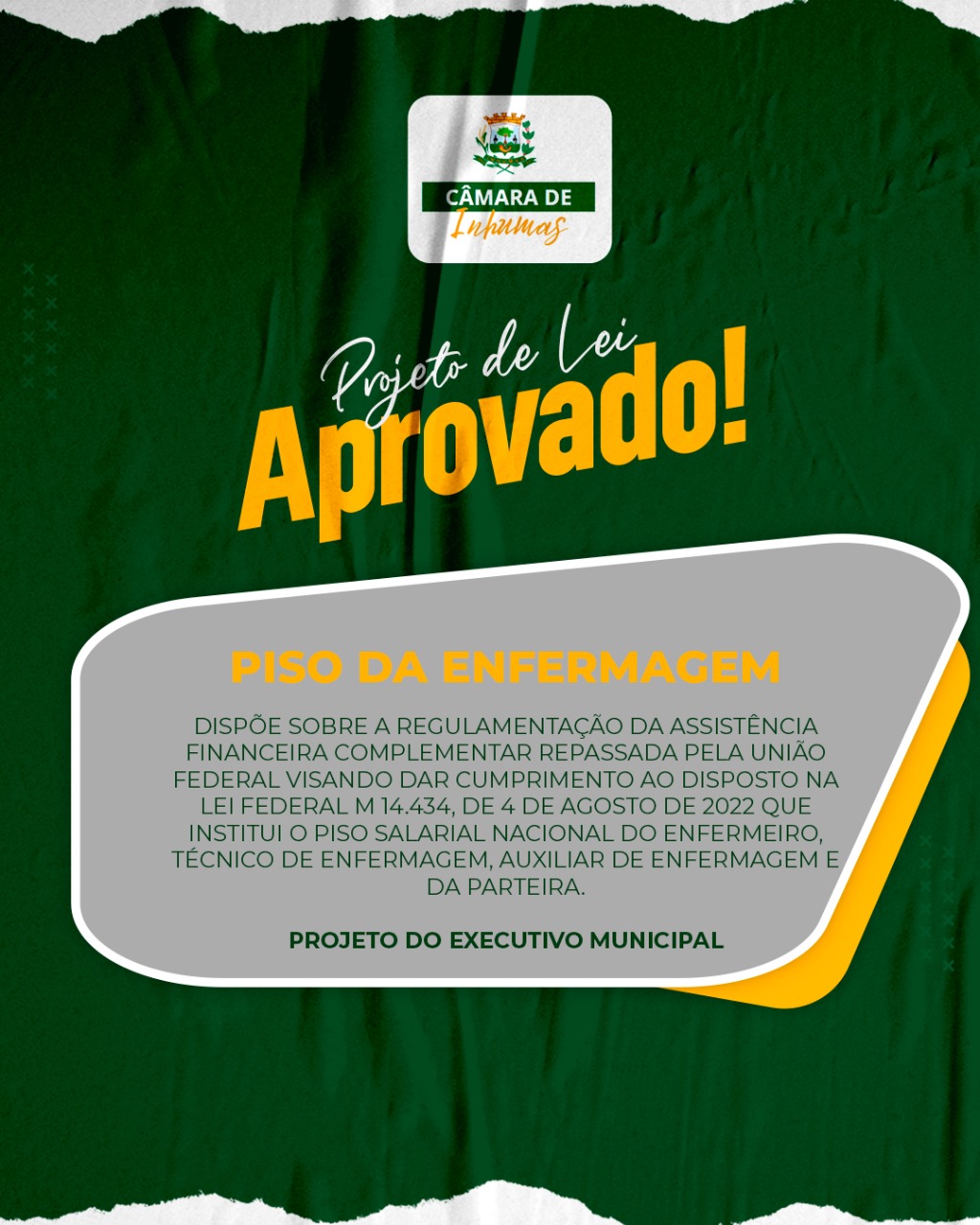 Dispõe sobre a regulamentação da Assistência financeira complementar repassada pela União federal visando dar cumprimento ao disposto na lei federal m 14.434, de 4 de agosto de 2022 que institui o piso salarial nacional do enfermeiro, técnico de enfermagem, auxiliar de enfermagem e da parteira. EXECUTIVO MUNICIPAL.