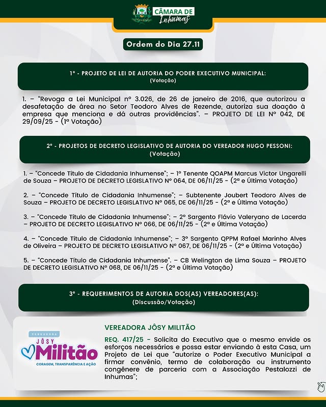 A Câmara Municipal de Inhumas reforça seu compromisso com a transparência, o diálogo e o trabalho responsável em favor da nossa comunidade. 💙📘