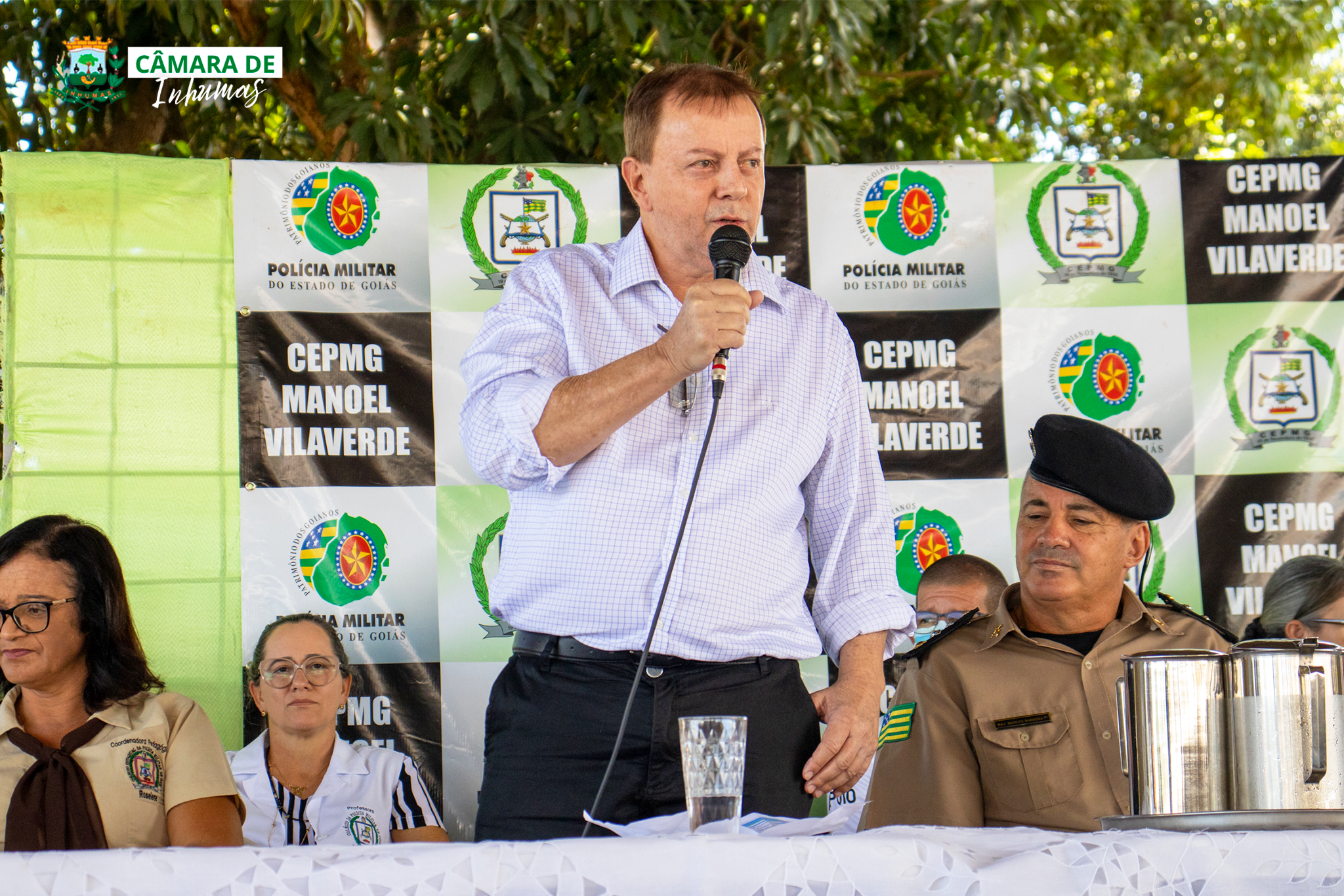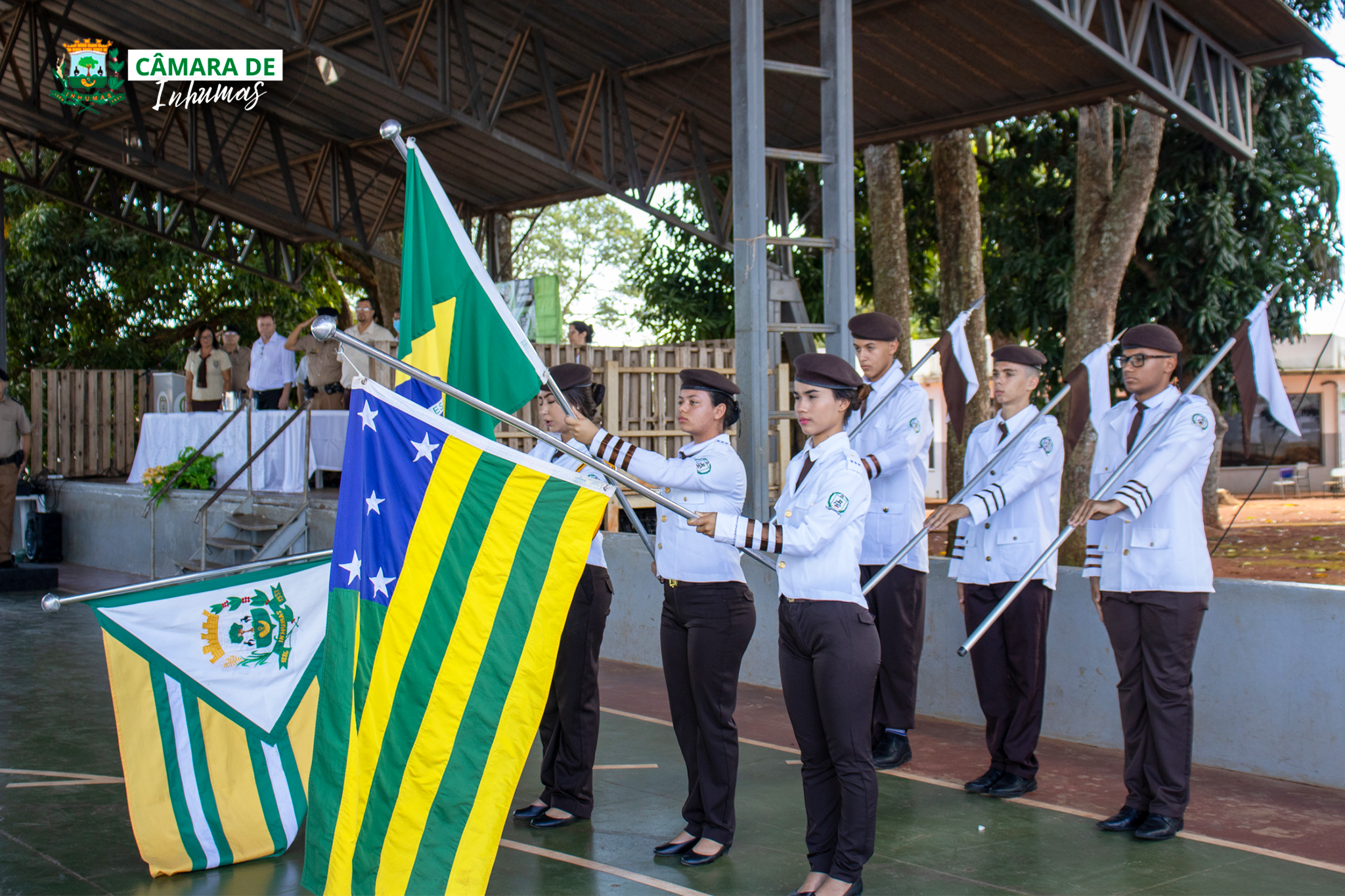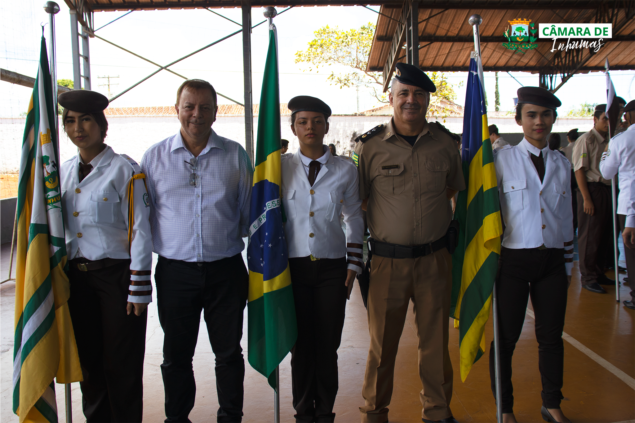 Nesta manhã (02/03), o Presidente da Câmara Municipal de Inhumas (Vereador Suair Teles), esteve presente em uma solenidade no Colégio Militar Manoel Vilaverde, da cidade de Inhumas.