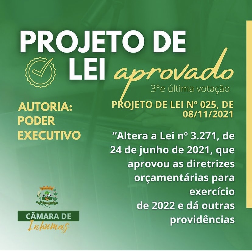 Projeto de Lei nº 025, de 08 de novembro de 2021.