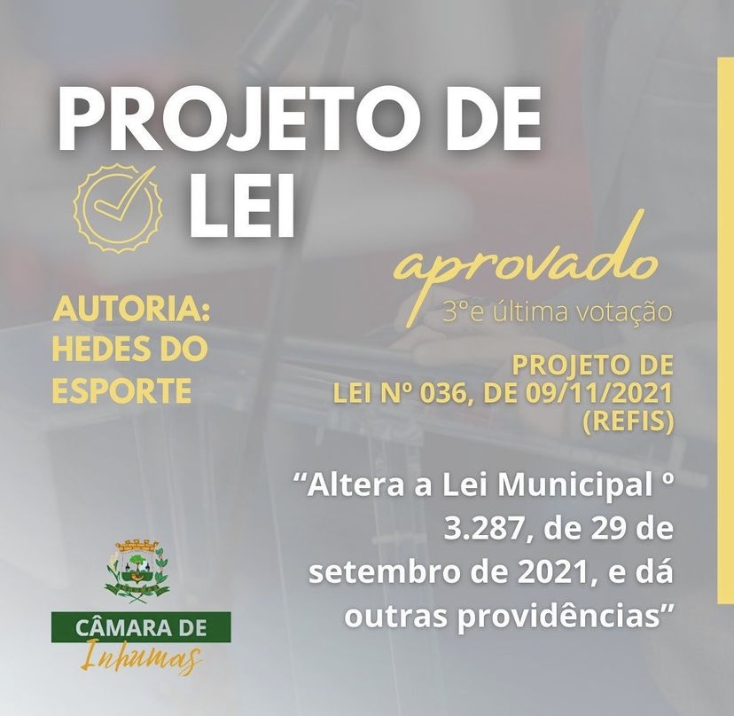 Projeto de Lei nº 036, de 09 de de novembro de 2021.