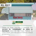 O vereador solicita também, que a administração municipal possa viabilizar a “construção” de Quiosques de Alvenaria nas praças municipais que ainda “não contam com este benefício” e que proceda a “reativação” dos que se encontram em estado de abandono.