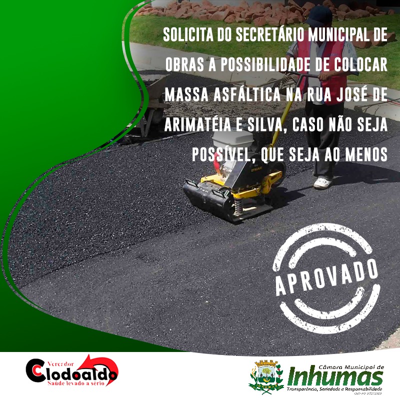 Foi aprovado por unanimidade durante sessão realizada na Câmara Municipal de Inhumas, no último dia 27 de Agosto de 2019, o requerimento de nº. 291/19, de autoria do Vereador Clodoaldo Costa (MDB), onde o mesmo solicitou o envio de expediente ao Secretário Municipal de Obras – Sr. Waldemar Pereira Júnior, requerendo do mesmo que providencie a manutenção diária dos “broquetes” da Rua Dr. José de Arimatéia e Silva, Setor Central de nossa cidade. Solicitamos ainda que estude a possibilidade de retirar a atual estrutura que compõe a mesma, os “broquetes”, e proceder à pavimentação asfáltica desta via; Não havendo a possibilidade de retirá-la, então, que seja feita a pavimentação por cima dos “broquetes”.