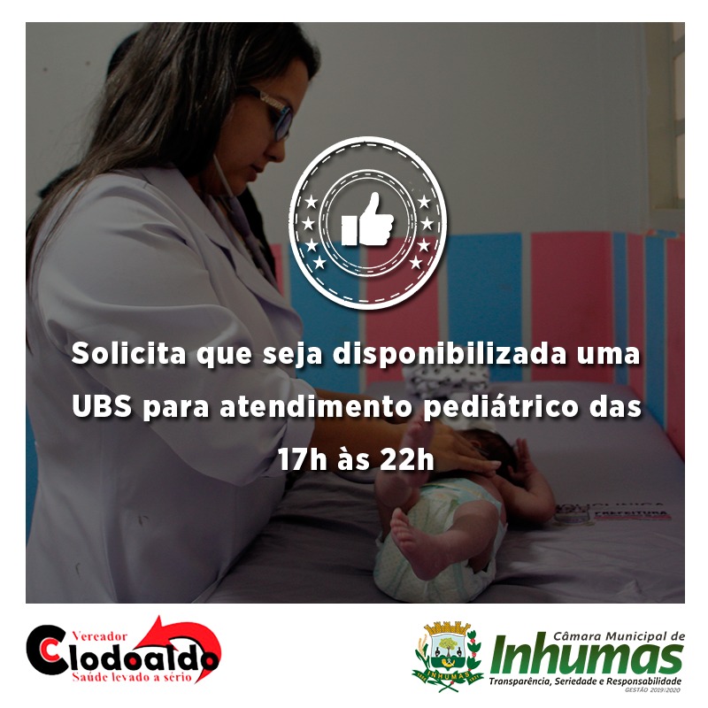 Vereador Clodoaldo Costa(MDB), solicita ao Executivo que direcione UBS de Inhumas para que promova atendimento com “Médico Pediatra” no período Noturno até as 22h