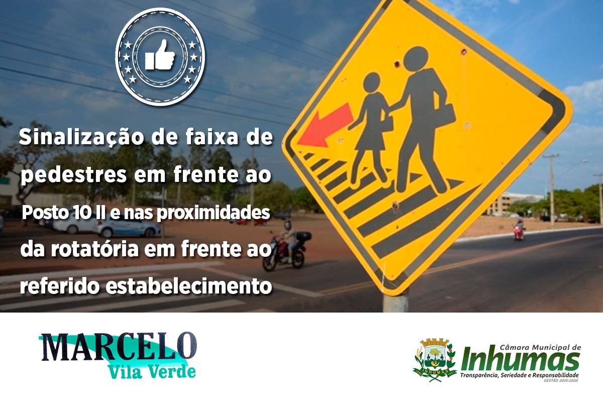 Aprovado por unanimidade em “Sessão Ordinária“ realizada dia 14 de Fevereiro, na Câmara Municipal de Inhumas, o “Requerimento n° 041/19“, do vereador Marcelo Vila Verde (PV), que solicita o envio de expedienteao Chefe do Poder Executivo Municipal, solicitando do mesmo que através da Secretaria competente, sejam levados a efeito a instalação de uma “Faixa de Pedestres”, em frente ao Posto 10, na Avenida Bernardo Sayão.