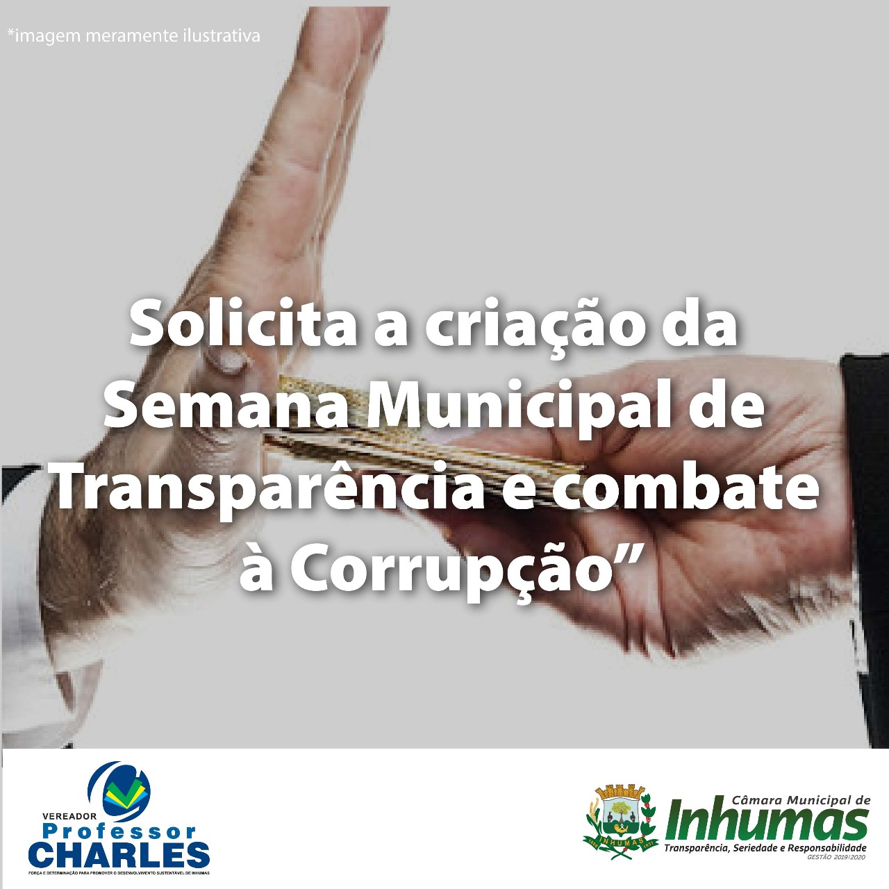 Vereador Prof. Charles solicita ao Executivo que institua a “SEMANA MUNICIPAL DE TRANSPARÊNCIA E COMBATE A CORRUPÇÃO”