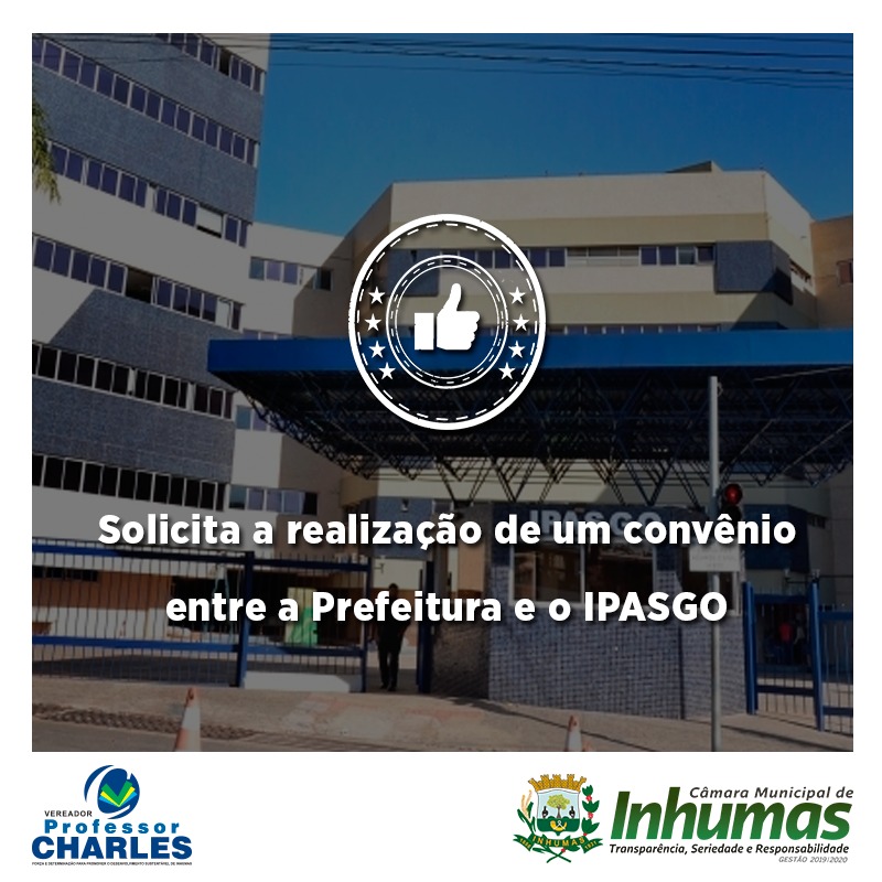 Aprovado por unanimidade em “Sessão Ordinária“ realizada dia 16 de Maio, na Câmara Municipal de Inhumas, o “Requerimento n° 188/19“, do vereador Alessandro Professor Charles (PDT), que solicita o envio de expediente ao Chefe do Poder Executivo Municipal, solicitando do mesmo que faça gestões junto ao Presidente do IPASGO – Instituto de Previdência e Assistência Social de Goiás, objetivando a “realização de um convênio” com a Prefeitura Municipal de Inhumas, onde possa facilitar o acesso dos servidores públicos municipais ao “PLANO DO IPASGO” com uma “tarifa menor”.