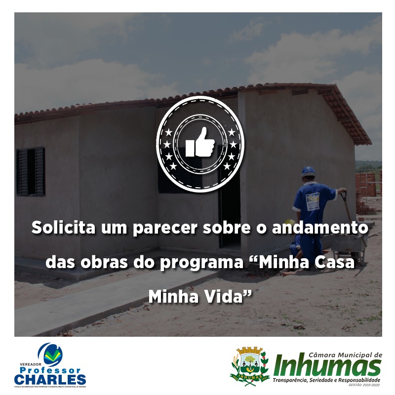 Solicitamos um “parecer” sobre a execução deste importante Programa, o qual a população quer esclarecimentos sobre o mesmo par parte do Município, se os recursos federais destinados para o PROGRAMA MINHA CASA MINHA VIDA já foram enviados para Inhumas e, caso já, qual o prazo para o início das obras.