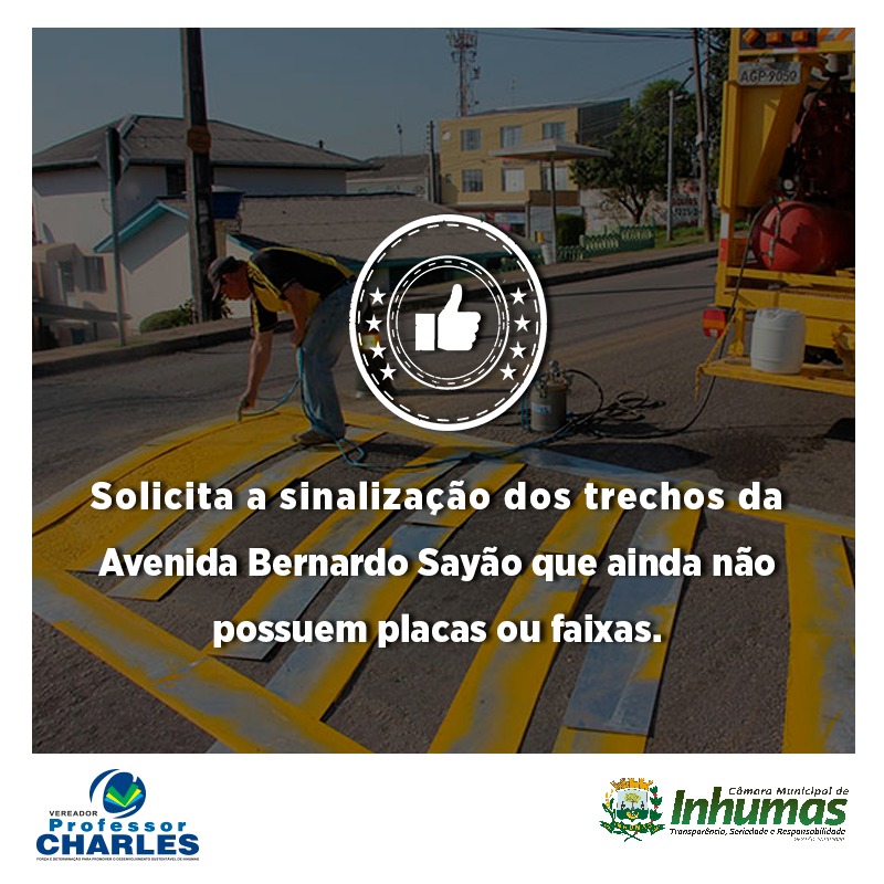 Aprovado por unanimidade em “Sessão Ordinária“ realizada dia 01 de Agosto, na Câmara Municipal de Inhumas, o “Requerimento n° 256/19“, do vereador Professor Charles Montanini – PDT, que solicita o envio de expedienteao Chefe do Poder Executivo Municipal, solicitando do mesmo que através de sua Secretaria competente possam fazer gestões junto ao DETRAN-GO de nossa cidade, no sentido de promover a “sinalização” de vários trechos da Avenida Bernardo Sayão, em especial nos principais pontos de maior fluxo de transeuntes (pedestres ou ciclistas), principalmente nas vias de acessos às Escolas, Colégios Estaduais e Creches/CMEIS Municipais.