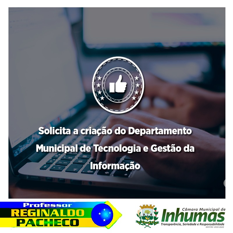 Aprovado por unanimidade em “Sessão Ordinária“ realizada dia 09 de Abril, na Câmara Municipal de Inhumas, o “Requerimento n° 138/19“,  do vereador Professor Reginaldo Pacheco, que solicita o envio de expediente ao Executivo Municipal, solicitando do mesmo a criação de um “DEPARTAMENTO MUNICIPAL DE TECNOLOGIA E GESTÃO DA INFORMAÇÃO”, composto de 02 analistas, 02 programadores e de 03 técnicos.