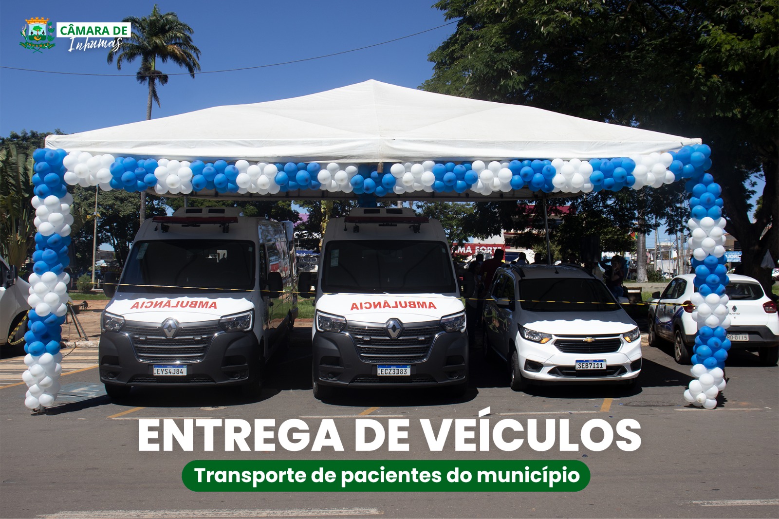 Nesta manhã do dia 25 de abril, a Prefeitura de Inhumas, via Secretaria Municipal da Saúde, realizou na Praça Belarmino Essado, a entrega de veículos utilizados para o transporte de pacientes do município.