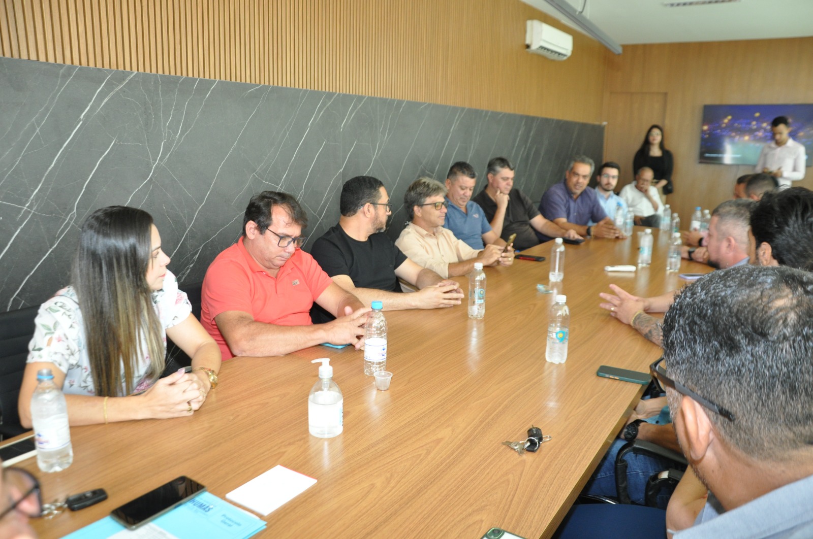O Presidente da Câmara, vereador Suair Teles, juntamente com os Parlamentares Adriano Moreira, Hedes do Esporte, Alan Serra, Alessandro Valin, Edvaldo Jr., Sandra Gadia e Prof. Oscar Mendes, participaram de uma importante reunião na quarta feira (20/09), na Prefeitura Municipal de Inhumas. Além do Prefeito Dr. João Antônio, ainda estavam presentes vários empresários do Polo Têxtil, o Secretário de Planejamento Valdemar Jr. e o Secretário de Indústria e Comércio e Emprego Edson Marques.